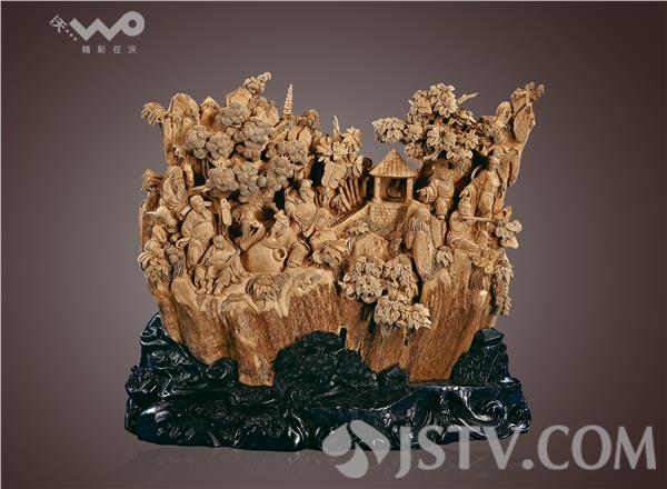 荔枝新闻记者在这个沉香的王国里,看到一段段泛着奇香的木头,变成观音菩萨、骏马耕牛,书童仙女、花卉植物、田园山川、白云危岩、牛车木船、桌椅手串,栩栩如生,活灵活现,“老子出关”、 “万马奔腾”、 “仙女散花”、 “童子拜观音”、 “百子贺寿”、“和谐家园”、“马到成功” 、“福寿双全”、“三阳开泰”、 “福满人间”等等作品,无不寓意美好,精雕细刻,巧夺天工,叹为观止。为搜集珍宝,藏宝惠民,二十多年来,陆亚萍上高原,去边陲,入拍卖行,进名师们,重金收购各种名贵工艺品,还花费巨资抢救濒临失传的竹雕、沉香雕刻等非物质文化遗产。据不完全统计,艺术馆共收藏了一万多件艺术珍品,涵盖了木雕、根雕、铸雕、塑雕、玉器及紫檀红木家具、藤制家具等,每一件都极致精美,各具特色,其中《老子出关》、《水浒108将》等作品还获得中国第三、第四届艺术品博览会金奖。《老子出关》中的老子端庄持重,眉目传神,仙风道骨;老牛体态彪悍,肌肉凸显,形神兼备,千年古桩横卧作路,书童前行,别有情趣。挂屏《水浒108将》既吸收了西画的写实手法,又融合了现代人物的造型要素,108个人物从形神动作到手执的各种兵器,体现了各自的身份、不同的遭遇和性格心绪,让人们领略到梁山好汉们的精气神。人物造型逼真自然,画面连贯统一,气魄宏大,气韵生动。有关专家用五个最来总结它的特色:体积最大,人物最多,设计最精湛,雕工最精细,效果最神奇。