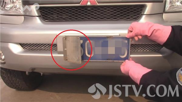 驾驶员付某向民警出示了行驶证和身份证,自称没带驾驶证,民警让他将车开出来进一步检查。民警发现这辆江苏号牌车辆前后车牌都有折痕,翘了起来。车上人员解释是车前面被一个大货车碰了,车牌翘了起来。