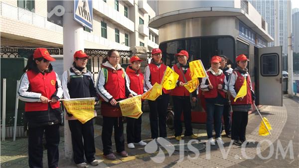 3月12日,常州市清潭中学八(12)班的几位同学来到劳动西路与怀德路十字路口的岗亭,开始文明交通志愿者服务。