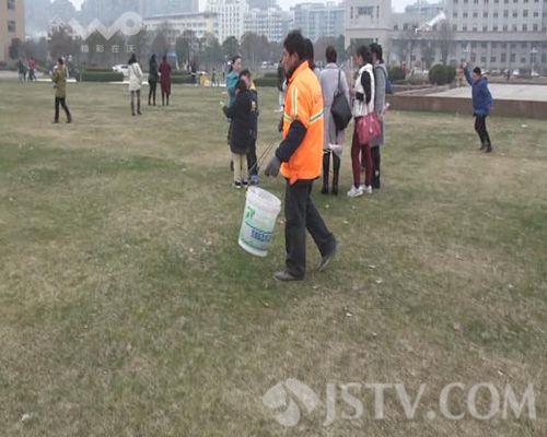 阳春三月,春暖花开,正是踏春出游放风筝的好时光,越来越多的市民利用星期假日,带着孩子到公园踏春放风筝。3月13日下午4点钟左右,记者开车经过盐城世纪公园时看到,在公园对面的草坪广场上,数以百计市民带着孩子在广场的草坪上放风筝,孩子们玩得是不亦乐乎,家长们也是忙得一头的汗。但是,记者在现场也发现,不少家长在照顾孩子的时候,不文明行为随处可见。