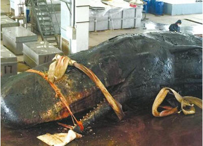 2月14日清晨,南通市如东县长沙镇的滩涂上,突然出现了一条长14.3米、重达数十吨的“超级大鱼”,后被南通博物苑专家鉴定为抹香鲸,“搁浅”前已死亡。第二天,当地洋口港又发现一头已死亡的巨鲸。半个月前,第一头抹香鲸启程前往大连,将被制成塑化标本。(现代快报曾于2月25日)有过报道。现代快报记者了解到,在解剖时,工作人员从其体内发现了一张8米左右的渔网,这或与抹香鲸的死因有关。