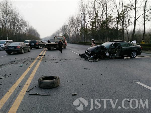 3月14号下午三点四十左右,扬州扬子江南路江海学院附近,一辆轿车司机疑开车玩手机分神,开到对面车道与一辆槽罐车猛烈碰撞,槽罐车紧急避让冲出70多米发生侧翻,事故中轿车几乎报废,轿车驾驶员受伤送医院,目前具体车祸原因还在调查中。