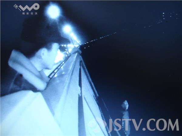 14日21时20分,接南京市公安局110指挥中心电,市民韩先生报警称,自己由北向南骑电动车路过大桥中段时,突然发现一男子站在桥栏外侧底部,微微冒着头,不注意很难发现有人站在哪里,随即他报警求助。