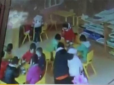 据家长反映,开学后,班级里不少孩子产生“怕上幼儿园”的情绪,于是家长们怀疑孩子遭到虐待。查看视频后,家长们都震惊了。“吃饭的时候,我女儿一直在哭,就没人去理她,她哭到呕吐,保育员阿姨就走过去直接把碗扔在地上,并且用力往地上按孩子的头。”家长说,因为冬天孩子穿的衣服比较多,不愿意蹲下去,保育员阿姨就一直往下按。此外,视频中还有老师多次推倒孩子,用黑板架挤压孩子的情况。