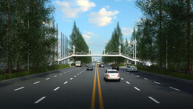 从对整条道路的景观影响上看,地下过街通道显然要优于地上天桥。而最终选择的天桥方案,设计单位也从景观协调方面进行了考虑。同时,这也将是南京首座桅杆式斜拉行人过街天桥。