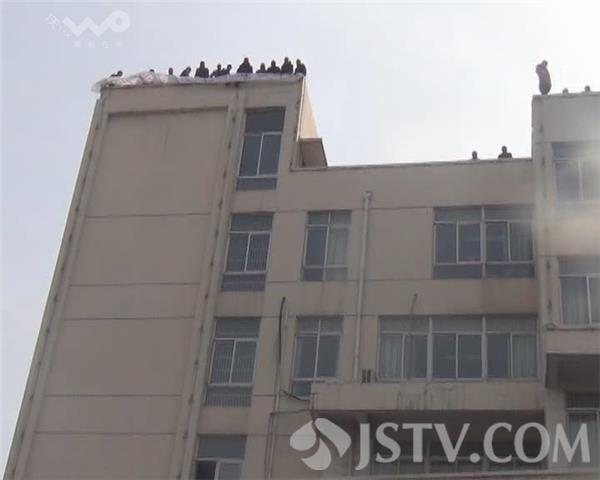 3月15日上午十时许,泰州消防支队靖江119指挥中心接到报警称,靖江市一家建筑公司楼顶上有人要跳楼,据说有20多名工人爬上了该公司楼顶上,当地消防接警后立即出动警力前往现场处置。