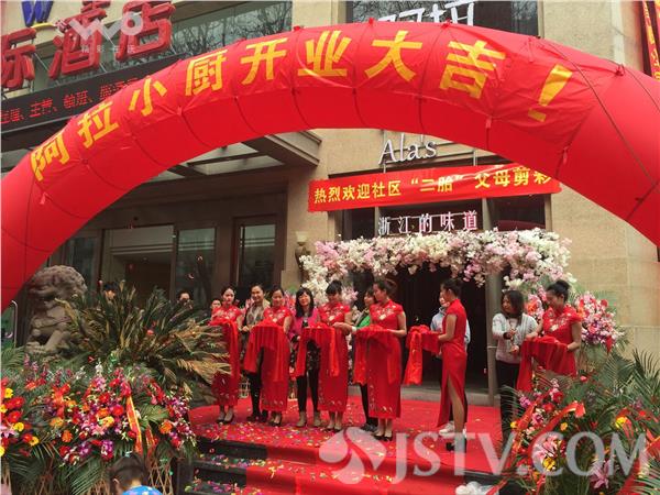 当日上午10时, 10对准备生“二胎”的准父母手持剪刀出现在庆典现场时,成了照相机、摄像机聚集点,只听咔喳、咔喳声。据了解,这家饭店在长江路社区附近,与社区有着长年良好的共建关系。