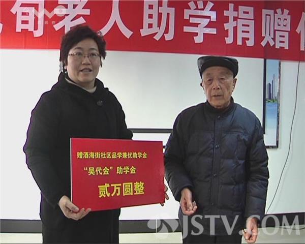 家住镇江京口区酒海街社区的老人吴代金已经年近九旬,最近,家人提出要给老爷子办寿宴庆贺一番,吴老拒绝了,他把办寿宴的两万块钱拿了出来,捐给了社区慈善工作站,用于资助品学兼优需要帮助的学生。 捐助现场,九十岁的吴代金老人看上去依然精神矍铄,他告诉记者,年轻时没上过学,念书不多是他最大的遗憾,这次不办寿宴,资助孩子,也算了圆了自己多年的心愿。 十名由学校推荐、经社区核实符合条件的小学生,在现场拿到了助学金。社区工作人员介绍,京口区慈善总会设有一个专门的慈善账号,各个街道社区设有分账号,吴老捐赠的这笔钱就放在这个账户里,用于资助辖区里的孩子们。 另外,据吴老的家人透露,这已经不是老人第一次献爱心助学了,在退休之前,他就长期以不同的形式资助身边的困难群体,一直坚持了几十年。