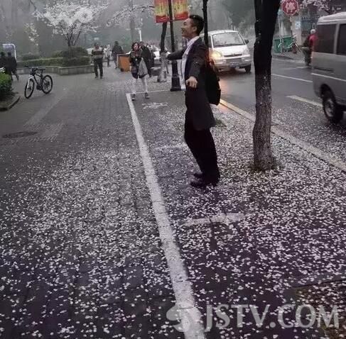 近日,南京鸡鸣寺的樱花近入盛花期,大量市民涌进了鸡鸣寺附近欣赏最美的樱花大道,早晚都是游客络绎不绝,但其中也出现了爬树,摘花,乱扔垃圾的不文明现象,19日清晨,.一年轻身着风衣背着书包的男子为了拍照,制造樱花雨的情境,竟然拿脚猛踹樱花树,大量樱花花瓣洒落,树枝也险些被摇断,男子在洒落的花瓣中张开双臂微笑拍照,眼见这一幕,不少市民愤慨不已,纷纷拍照发朋友圈,有市民表示,如此不道德行为一定要让他上头条。