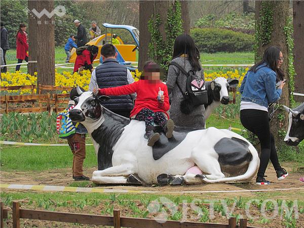 一些游客随意爬在“奶牛”身上“摆造型”,这样的不文明行为让赏花盛宴打了折扣。