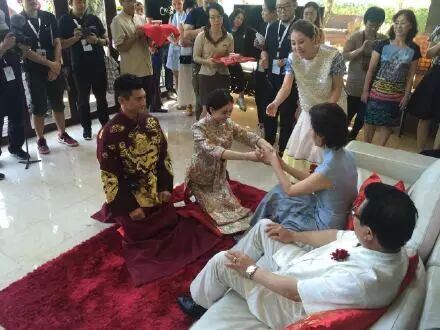 新人们要给父母敬茶,改口叫爸妈(btw刘诗诗麻麻因为颜值过高还上了今天的热搜)