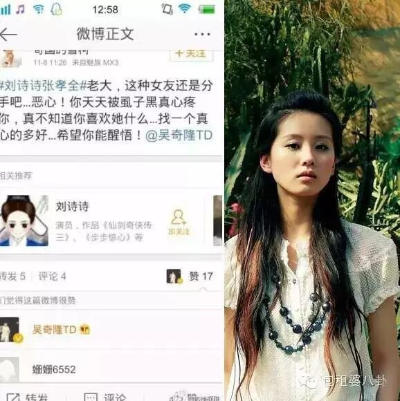 另外,吴奇隆还陷入了“制片人潜规则女演员”的风波。后吴奇隆经纪公司予以澄清,刘诗诗也在微博上坚定地支持吴奇隆。