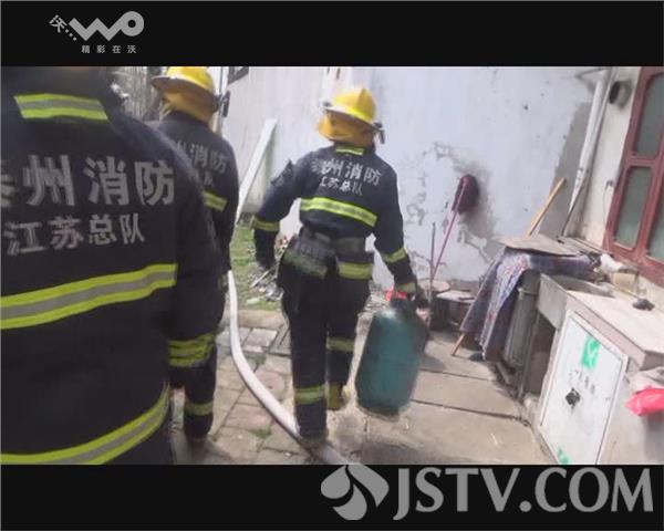 3月22日上午11点,泰州高港区口岸镇扬子江北路附近,一居民家中厨房的煤气瓶漏气起火。消防官兵到达现场,发现厨房内的煤气瓶还在猛烈燃烧,周围有明显的灭火器扑救的痕迹。一名战士在保持安全距离后,出一支枪对着煤气瓶浇水灭火。另一名战士在水枪掩护下,拧紧煤气瓶的气阀,将着火的煤气瓶从厨房内提到屋外空旷处。