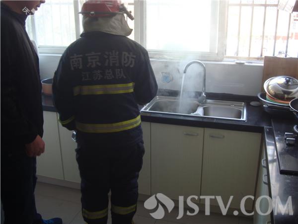 今天(3月27日)上午,鼓楼区宝象花园小区15号楼三单元102房间厨房冒浓烟,消防员和民警赶到后发现是住户小俩口炖菜后出门忘关煤气所致。