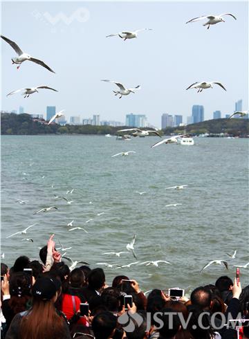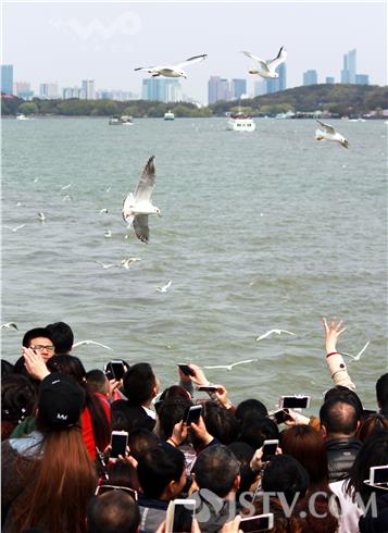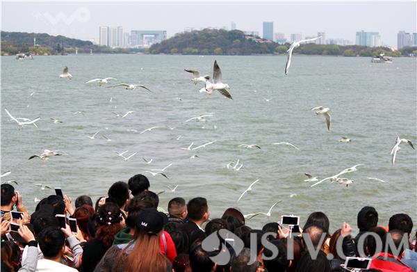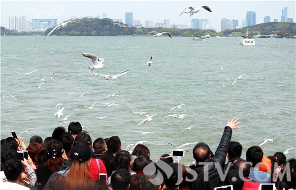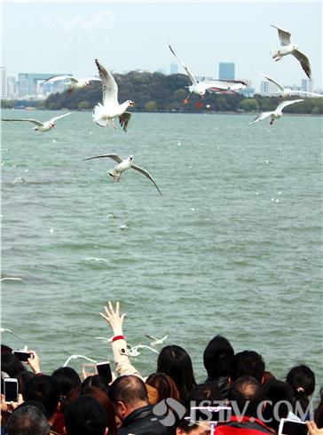 近日,成群水鸟绕船飞翔、游客竞相投食观鸟的景象在位于无锡的国家5A级景区太湖鼋头渚景区内上演。据悉,随着太湖治理的推进,太湖水质正在逐步改善,人鸟共欢的和谐生态场景形成常态。