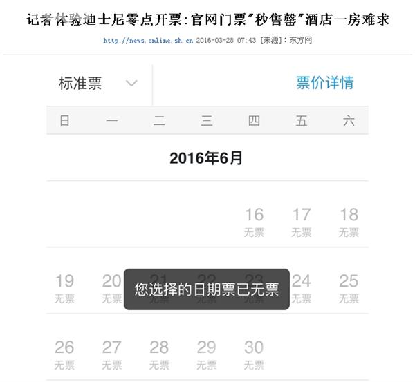 证实:仅开园当天无余票 网络交易暂有故障
