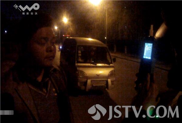 晚上8点多钟,徐州泉山交警在黄河北路民馨桥附近设卡查处酒驾,一辆银灰色的面包车在距设卡点约100米处突然停车,司机从驾驶室跳出来朝花坛逃跑,被执勤交警逮个正着。现场用测酒棒检测,驾驶员朱某果然喝了酒,经询问朱某承认喝了两瓶啤酒,交警立即对朱某进行了酒精检测。