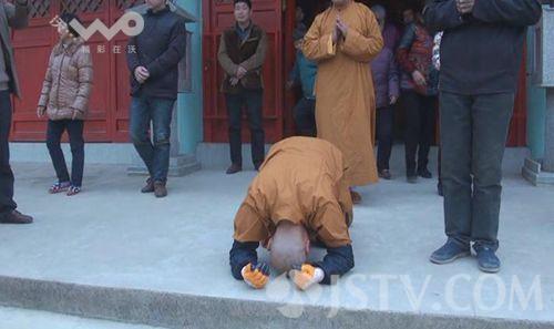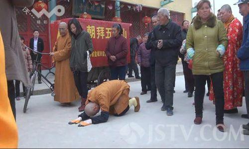 3月29日上午8点18分,盐城瑞观寺主持释演春大和尚收拾好简单的行囊,在一名僧侣的陪护下,开始他的三步一叩前往佛教圣地五台山朝拜的行程,预计需要一年半的时间,到达佛教圣地五台山,全程一千四百多公里。