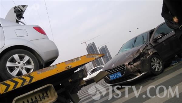 记者赶到现场时,施救车正在对两辆相撞轿车进行拖离,撞击地点路面上残留着许多撞击碎片,由于撞击力巨大,两车受损严重,起亚轿车整个车头部位被撞掉,两侧车灯被撞脱落,引擎盖下多个部件损毁严重,而路口南侧30米处的标志轿车左前侧被撞变形,整个左前车轮轮毂被撞断,挡风玻璃被撞裂,车里两只安全气囊全部爆出。