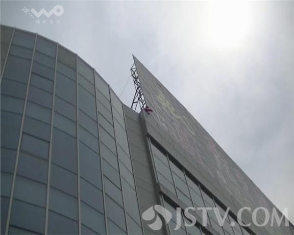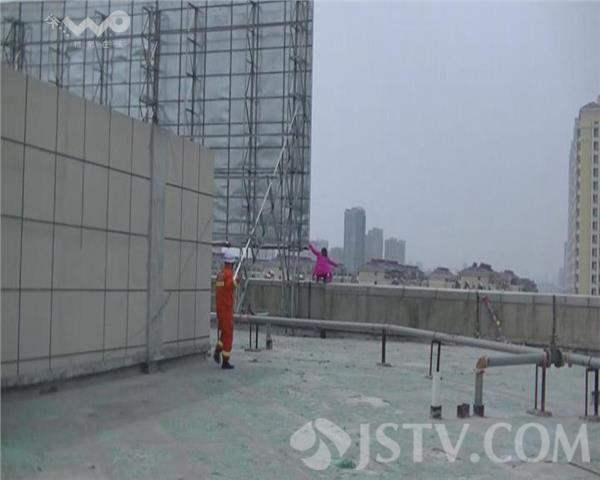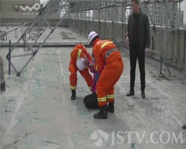 29日下午两点多,一名中年女子爬上淮安市南京路商贸食品城顶楼欲轻生,现场险象环生。记者赶到现场时,女子蹲坐在楼顶的一处广告牌旁,不停的大声哭喊、情绪激动,随时有跳楼危险。接警后,一组消防官兵在楼下布置救援设施,另一组消防官兵上楼悄悄从后方接近,趁当事人不备,一把将跳楼女子抱下。