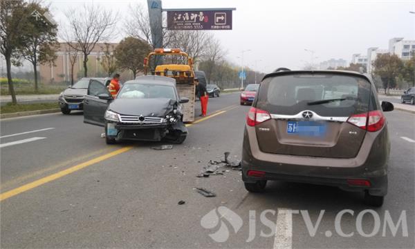 据现场目击者透露,当时江淮轿车可能是为了避让修路的地段将车子绕行了,之后与由北往南直行的大众轿车发生相撞,当时撞击力度非常大发出巨响好在双方车内驾乘人员都没事