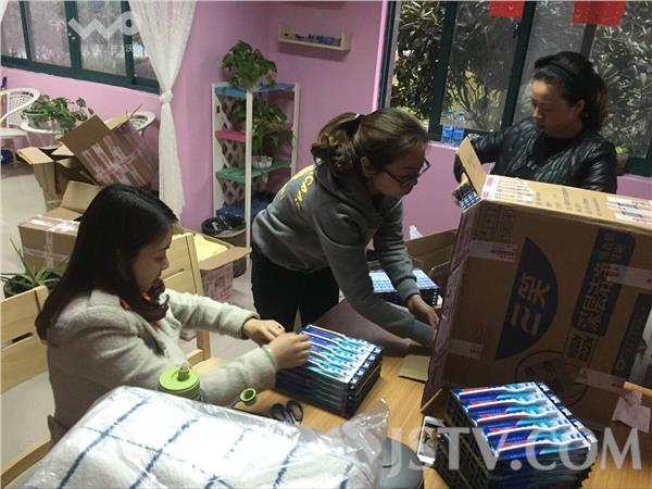 考虑到从南通寄到云南福贡路途遥远,并且运输也不是很方便,寄出的物品件数太多也可能会造成遗失,南通石榴籽爱心公社的成员们纷纷抽出休息时间来帮忙把所有的物品分类合并打包,原来1800支牙刷需要装6个在箱子,群友们将原来固定牙刷的架子拆开后硬是将1800支牙刷装成3箱。洗漱用水杯和香皂盒原来是用4个纸箱装的,大家找来一个大点的箱子将两件合并装成了一大箱。