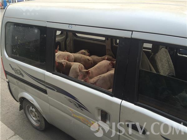 当日下午15时30分,镇江交警高速公路二大队民警尹鸣、辅警祖文燕在扬溧高速镇江南收费站对过往车辆作例行检查时,发现一辆苏A车牌号的小型面包车内传出阵阵猪叫,该面包车行驶中还左右摇晃,民警随即示意该车靠边停车接受检查。不查不知道,一查吓一跳,原本是7座载客的小型面包车,后面两排座位被拆除,装了满满一车猪崽,细细一数,整整20只。
