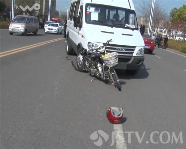 今天(4月1日)上午10点,南京六合雄州西路发生一起车祸,一家单位昨天新买的一辆依维柯轿车上午准备去车管所办理牌照,哪知途中遭遇不幸,撞上一辆过马路的电瓶车。记者赶到现场时,被撞的骑电瓶车女子刚刚被120急救车送往医院抢救。一辆崭新没有上牌的依维柯轿车越过双黄线冲到左侧的一股车道上,一辆电瓶车的车屁股卡在依维柯轿车的右前轮下面,依维柯轿车后面有两道黑呼呼的刹车印。目击者告诉记者,依维柯由西向东行驶,电瓶车在依维柯前面同一方向行驶,不知是怎么回事,行驶中的电瓶车突然左拐,跟在其后面的依维柯司机发现情况后,急忙往左猛打方向,无奈速度过快,依维柯在紧急刹车20米后还是撞上了左拐的1电瓶车,前轮压住电瓶车的屁股。骑电瓶车女子被弹出来。摔在路面上,多亏戴着头盔,路人发现女子口吐白沫。记者在110警车找到依维柯驾驶员,他告诉记者。轿车是昨天新买的,今天上午去车管所办牌照,正常行驶到该路段时,看到电瓶车突然左拐,他赶忙靠左避让,可是,避让不掉了,还是撞了上去。记者随后赶到六合人民医院急诊室,骑电瓶车女子已经昏迷,正在接受医生检查。目前,交警部门正在对此事故展开调查。
