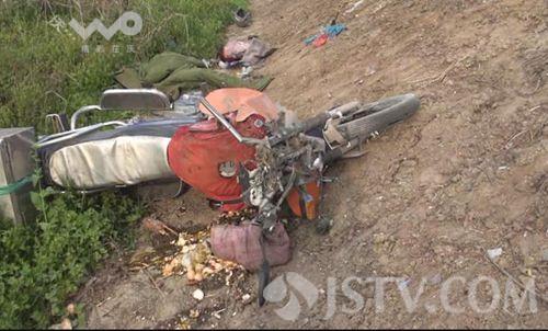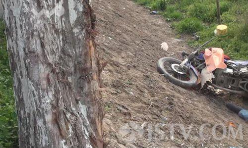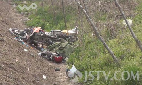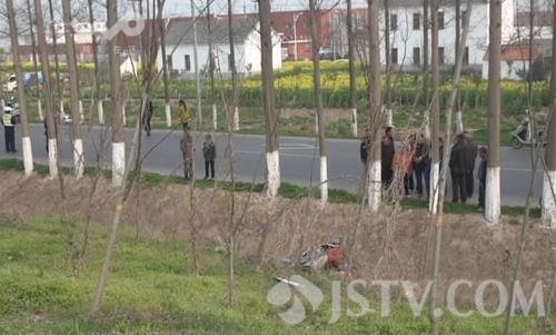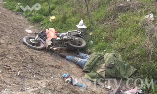 记者赶到现场时,摩托车上受伤的女乘客已经被120救护车接送到医院抢救,辖区交警中队民警正在指挥过往车辆缓慢通过事故路段,不少的附近村民和过路群众在路边围观,一名中年男子仰面躺在公路旁边的护沟内,头上盖着一件黄色的军大衣,已经没有了生命迹象,一辆大架子摩托车侧倒在旁边的沟里,整个仪表盘破碎脱逃落,左侧手把损坏严重,挡风板弯曲变形,公路边上的青草地上留下摩托车冲下护坡的明显痕迹,路边的一棵行道树上被蹭去一大块树皮,而摩托车上携带的物品散落一地。一名在附近植树的老爷爷告诉记者,事故发生时他就在旁边的树林里在植树,但没有看到事故发生的瞬间,他赶到现场时,听摩托车驾驶员的老婆讲,车上一共就两个人,驾驶员是他的老公,他们车子是从陈洋过来的,可能是因为老公开车疲劳才撞上树的。
