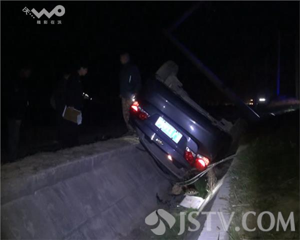 记者也迅速赶到现场,在现场看到一辆黑色的轿车四轮向上,车头向东躺在路北侧的水渠内,还好水渠没有水,车上一人还困在车内无法动弹,随后消防人员爬到内车将一人拉了出来,驾驶员被抬上救护车经医生诊断已无生命迹象,副驾驶位上一位小伙子右膀骨折,在轿车的北侧还有一块后挡风玻璃全部破碎。据副驾驶位上小伙介绍他在奶牛厂上班,他的朋友过来带他去大丰玩,当时他座在车上玩手机走到该路段就轰的一声撞上电线杆,车也翻了,后来好长时间什么都不知道。记者随后向供电修理师傅了解,因为电线杆被撞断,他们已经调来电线今晚会突击抢修保证及时供电,交警还在现场勘查,事故原因还有待进一步调查。