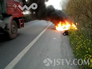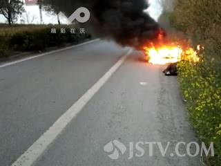 4月1日晚上6点30分左右,G204国道盐城市大丰区草埝境内一辆电动车发生自燃,浓烟滚滚。燃烧几分钟后大火就将电动车烧了剩下铁架,据电动车驾驶员介绍,晚上他载着一个人开着电动车准备回家,突然觉得车子有问题,走不动了,就让坐在后面的人下来看一下,后面的人下来准备看时发现电动车前面在冒烟,然后就冒出火苗,驾驶员见状立刻丢车而逃,这时火越烧越大无法自行扑灭,只能眼睁睁看着被烧成铁架,两人幸未受伤。