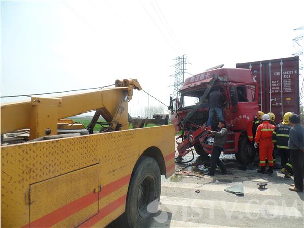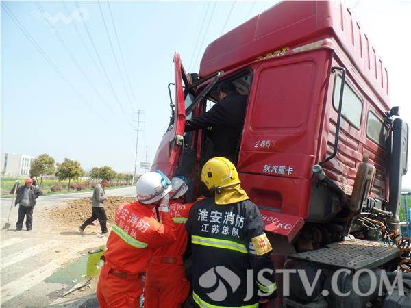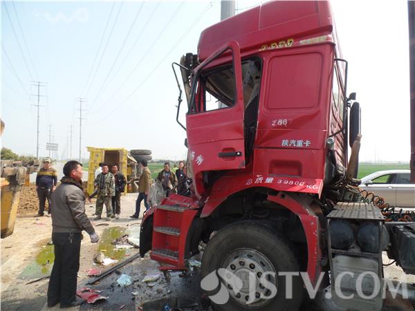 昨天(4月1日)上午,淮安市洪泽县328省道与冶金大道交叉口发生一起交通事故,一辆货车撞上一辆运土车,导致货车驾驶员被困驾驶室内。10点40分,消防官兵到场后发现是一辆货车与运土车相撞,运土车侧翻在马路上,泥土洒了一地,驾驶员已被先期到场的交警救出。货车的驾驶室严重变形,驾驶员双腿被卡在方向盘下面无法动弹。消防官兵了解情况后立即展开救援,首先利用破拆工具对驾驶室进行破拆扩大救援空间,并调来牵引车将驾驶室进行牵引扩大救援空间,经过消防官兵15分钟的紧张处置,成功将被困人员救出抬上120救护车送往医院进行救治。据现场目击者回忆,当时运土车正由西向东行驶,货车由南向北行驶,两车车速当时都比较快,行驶到事故路段时发生了相撞。