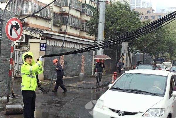 4月2日的一场大风雨,导致南京石鼓路一处电缆线全部坠落,不仅造成交通拥堵,还对周边群众造成极大安全隐患。民警张腾洋接警后迅速赶到现场,以一己之力在大雨中托举电线长达一个多小时。直到供电公司人员赶到,他才拖着疲倦的身体离开现场,对此,网友们称赞他为“托举哥”。进入春夏之际,风大雨多,希望有关部门对有关公共设施、管线进行一次检查,发现问题及时处理,避免发生坠落或者倒塌伤人事故。