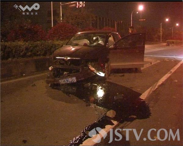 4月4日凌晨1点,南京玄武区312国道仙林汽配城附近,一辆快速行驶的轿车为避让突然闯红灯的三轮车,一头撞上马路中央的绿化带,轿车被撞的面目全非,庆幸的是,事故没有造成人员受伤。记者在现场看到,事故轿车停在逆行车道上,车前的保险杠被撞掉了下来。虽然事情过去了有段时间,但车主的心情仍不能平静。