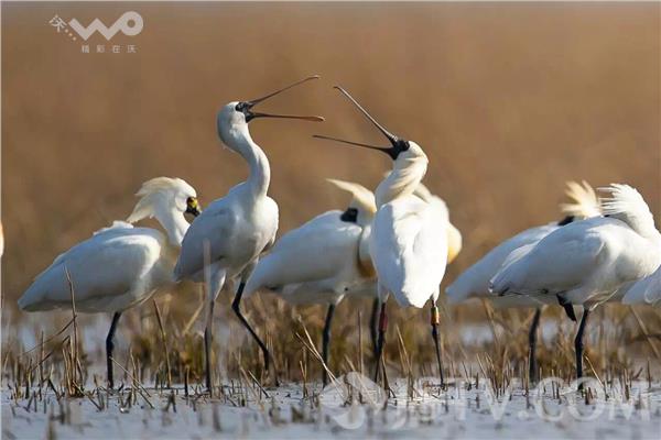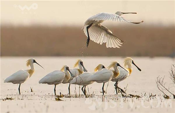 荔枝新闻记者在大丰麋鹿国家级自然保护区核心区看到,黑脸琵鹭成群结队地在水面觅食嬉戏,构成一幅美丽的生态画面。据保护区副主任沈华介绍,3月26日,他们观测到首批80只抵达的黑脸琵鹭,目前黑脸琵鹭数量基本稳定,它们将在盐城滩涂歇息大半个月,补充能量,于4月底向北方繁殖地迁徙。