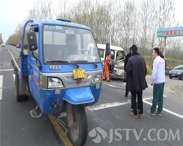 4月5日清晨6时18分许,江苏328省道淮安市淮安区仇桥段发生一起面包车与机动三轮车追尾,事故造成面包车上一名学生被困,当地公安、消防、急救等部门接到报警后,迅速出动救援力量赶赴事故现场实施救援。