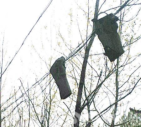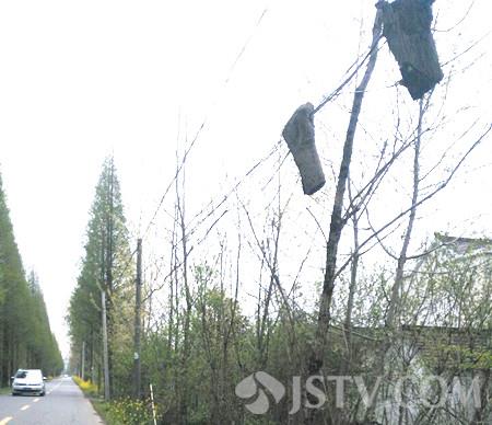 近日,住在南京市六合区玉带三教桥附近的荔枝新闻网友发现,路边钢绞线上面悬挂着两个大木头,被风刮得晃来晃去,感觉是两颗随时有可能掉下来砸在头上的“定时炸弹”,路过此处真是有点害怕。网友在现场看到后询问了附近居民,原来,这里有两棵大树,和上面的钢绞线靠在一起,天长日久钢绞线就长在树里面了。电信部门怕影响通讯就简单的把树锯了,留下了包裹在一起的部分,这样就留下了一个安全隐患,附近居民生怕有一天突然掉下来砸到人那就不得了了。网友在沿路看到类似这样的现象还不止一处,附近居民希望有关部门做事要彻底,不能留“尾巴”并且尽快设法消除这些安全隐患。