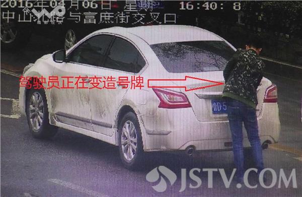 4月6日下午4点40分左右,徐州鼓楼交警大队民警通过监控发现,一名男子在中山北路富庶街路口,正在往车号牌上贴号牌贴,于是通知值勤交警前去查处。交警赶到现场时,发现驾驶员是一名年轻小伙子,民警要求其出示两证,并对其车辆进行搜查。