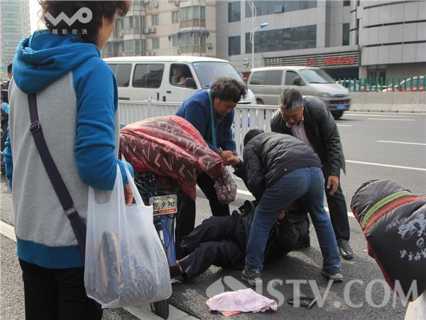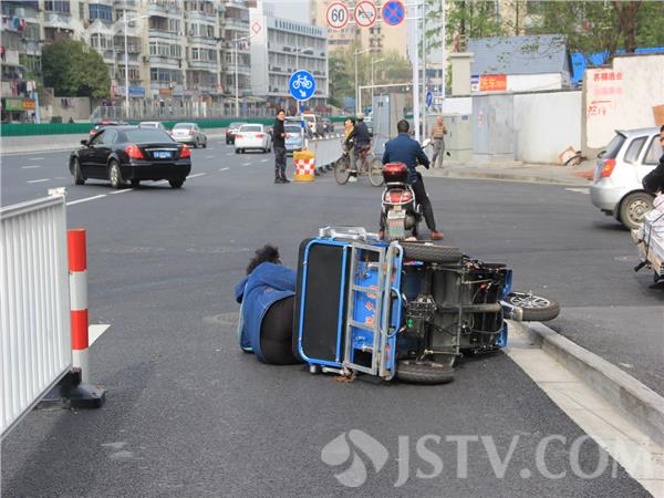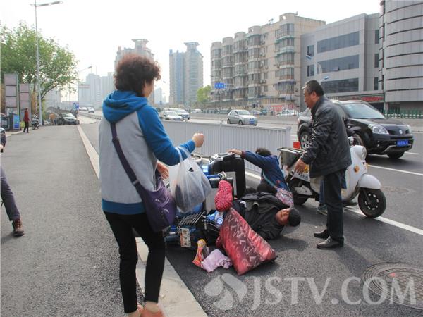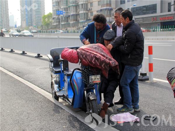 据了解,老两口骑电动三轮车突摔倒在路边,是由于定淮大桥下桥行驶时,没有注意到路牙所致。