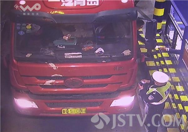 4月7日晚上10点多钟,一辆山东牌照大货车缓缓驶入京沪高速新沂东收费站,进入道口后货车突然停下不动了,执勤的徐州高速七大队民警赶忙过去查看。并用强光手电示意其匝道不能停车,驾驶员迅速启动车辆,将车辆驶入收费站。