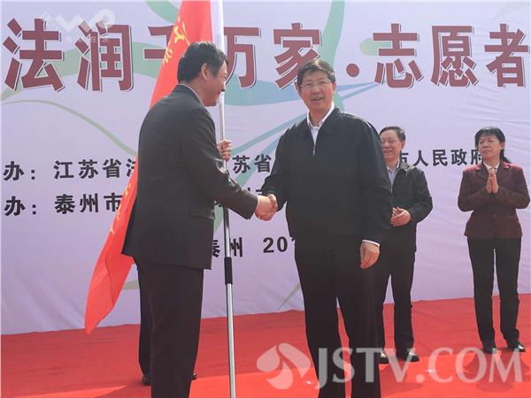 江苏省人大常委会副主任蒋宏坤在泰州参加了活动,并为江苏普法志愿者授旗。