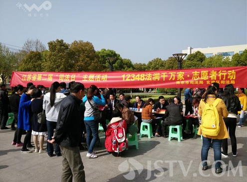 为进一步提升江苏省司法行政工作的社会知晓率和群众满意度,打造司法行政服务品牌,树立服务为民的良好形象,4月8日,江苏各地司法部门在广场、公园、集市等人流量较大的繁华地段集中开展第二届“司法日”联动服务宣传活动。