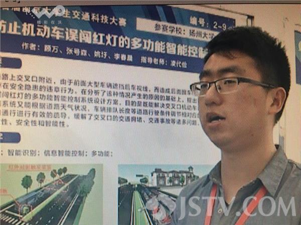 每年因为驾驶者误闯信号灯,造成交通事故的案例频频发生。于是,扬州大学交通工程专业的学生团队开发了“防止机动车误闯红灯的多功能智能控制系统”,如果前方有大车遮挡,驾驶者可以通过设置在绿岛中的LED情报板,读取信号灯的信息。此外,该系统的最大亮点是可以识别执勤中的救护车、消防车等特殊车辆,协调“绿波带”,为救援赢得宝贵的时间。扬州大学学生顾万表示:“系统将对应急车辆速度进行一个测判,速度低于设定值时,整个信息控制板将联合交通信息,进行一个信号的切换,由红灯转变为绿灯,方便应急车辆通过。”