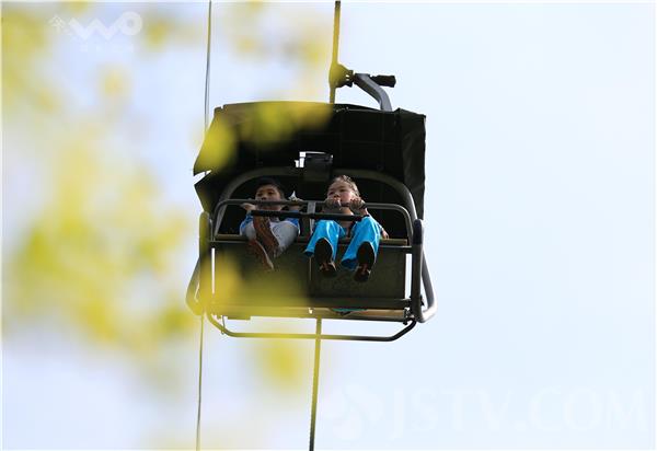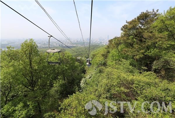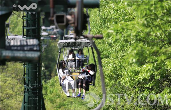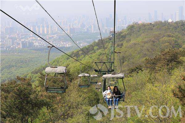 4月9日,游人乘坐南京紫金山敞开式吊椅索道观光游览。兴建于1993年的南京紫金山索道曾经是中国最长的单循环固定抱索器吊椅式索道,该索道运营23年后,将于今年5月中旬正式停运改造,未来该索道将使用封闭的吊厢,惊险刺激的全敞开式吊索即将告别游人,载入历史。