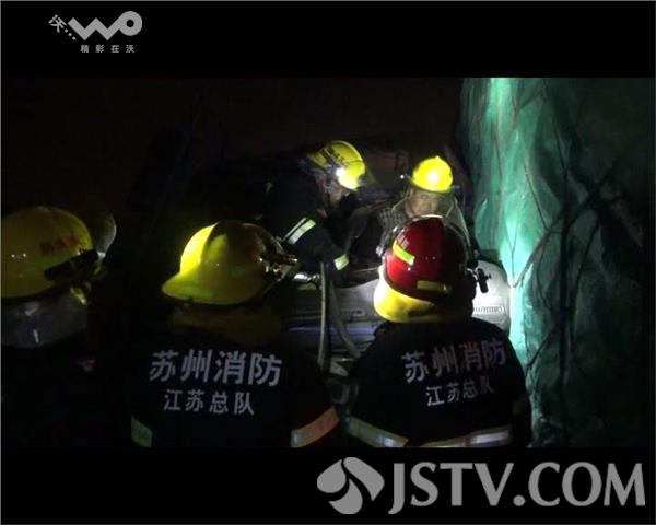 4月10日22时45分,苏州市消防支队吴江大队接到110指挥中心报警称,位于苏嘉杭苏杭线发生一起交通事故,有1人被困,急需救助。接到报警后,大队迅速调派盛泽中队2辆消防车12名消防官兵赶赴现场处置。中队消防官兵到达现场后,发现两辆货车发生追尾,追尾货车车头已严重变形,司机被困在驾驶室内无法动弹,处于昏迷状态。了解情况后,中队指挥员立即命令一组队员负责现场警戒工作;命令一组队员为司机带上安全帽,防止受到二次伤害后,再利用液压扩张钳进行破拆救援。经过全体消防官兵约30分钟的奋力救援,被困司机被成功救出。经询问交警得知,车祸为追尾货车司机疲劳驾驶导致。