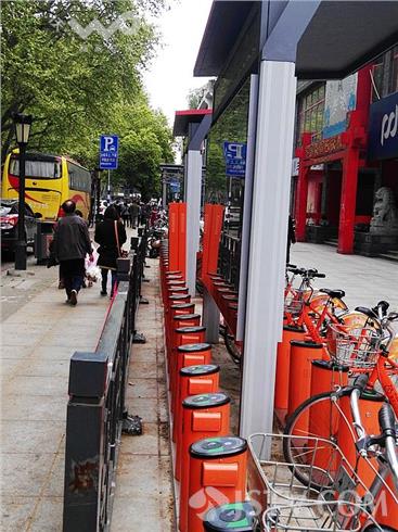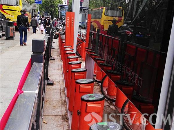 近日,有网友称,在南京瞻园路上有一个公共自行车点,48个桩,只有24个能用,另外24个被浪费,根本用不起来。得知情况后,荔枝新闻通讯员和网友一起来到瞻园路5060公共自行车停车点,看到这里一共有48个桩,24个一排,两两相对,向内的一排24个已经正常使用了,但是向外的一排24个离护栏间距只有20公分不到,根本无法摆放车辆。网友李先生指出:护栏也是固定的,这样安装实在不知道怎么使用?随后荔枝新闻通讯员电话联系了南京公共自行车事业部,对方表示对于李先生反映的问题,他们已经记录了,并会向相关部门进行反映。