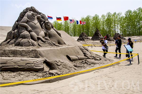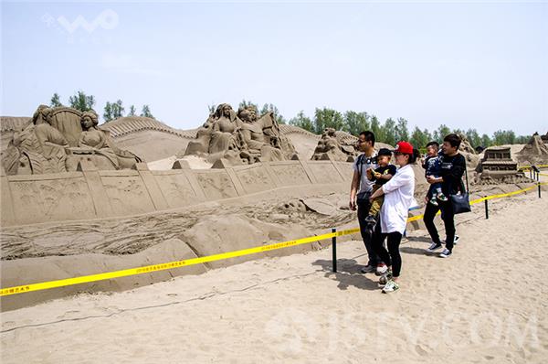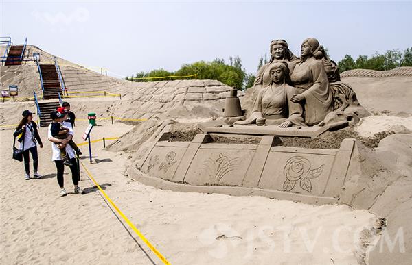 4月11日,不少市民在南京八卦洲沙漠风情园兴致勃勃地观赏沙雕,这里正举办中国南京首届国际沙雕节,本次沙雕节邀请了业内十五位顶尖沙雕师,利用本地江沙,打造了占地1万平方的沙漠风情园。园内有米迪士尼城堡、金陵十二钗、恐龙世界,十二生肖等80余座大小卡通沙雕,让南京及周边的游客近距离领略沙地风情、欣赏沙雕艺术,感受沙之乐趣。