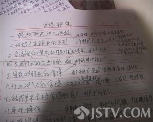 经现场查问,这些人均来自四川、湖南、湖北,都自称是被朋友大老远拉过来的,不远千里来南京到底做什么呢,对此,谁也不愿多说。面对质询,大家或者”环顾左右而言他“,或者谎话连篇、漏洞百出。民警随后从房间的柜子里、床铺下、沙发下搜出了大量记录、“笔记”,所有这些笔记都无一例外都记录了怎样做传销、上线怎样拉下线、怎样沟通等等这样的内容,显然,这些人明白是做传销的!面对事实,最终其中一名男子胡某不得不出来承认,他们确是来南京做投资工程的,他是总经理,其余人都是自己的下属,都是通过亲戚朋友关系拉过来的。据称,他们都是在做一个名叫“1040工程”(投资69000元,后期汇报1040万元)的项目,民警当即指出这个所谓的“1040工程”不过是一个老套的骗局,其实就是传销。此前已有不少人因为”1040工程“被警方处理了。民警随后将屋内10人全部带回派出所做进一步调查处理。