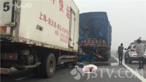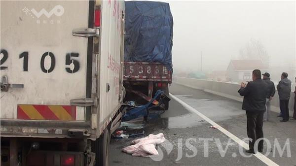 4月13日浓雾突袭盐城射阳全境,上午七点多钟,在国道G228射阳县幸福大道上跨桥桥面由南向北车道,发生了一起两车追尾的事故,事故导致追尾车辆上的一名驾乘人员当场死亡。