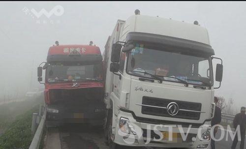 4月13日凌晨,盐城射阳全境遭到浓雾来袭,部分路段能见度低于百米。早上6点多钟,在国道228线射阳河大桥南侧路段,一辆大货车因前方车辆抛锚在路边,便减速慢行,结果被后面一辆大货车追尾,而紧随其后的一辆罐车在避让过程中,又遭另一辆货车追尾,一辆逆向行驶的二轮摩托车被货车夹在与路边的护栏中间,摩托车驾驶员受伤严重。